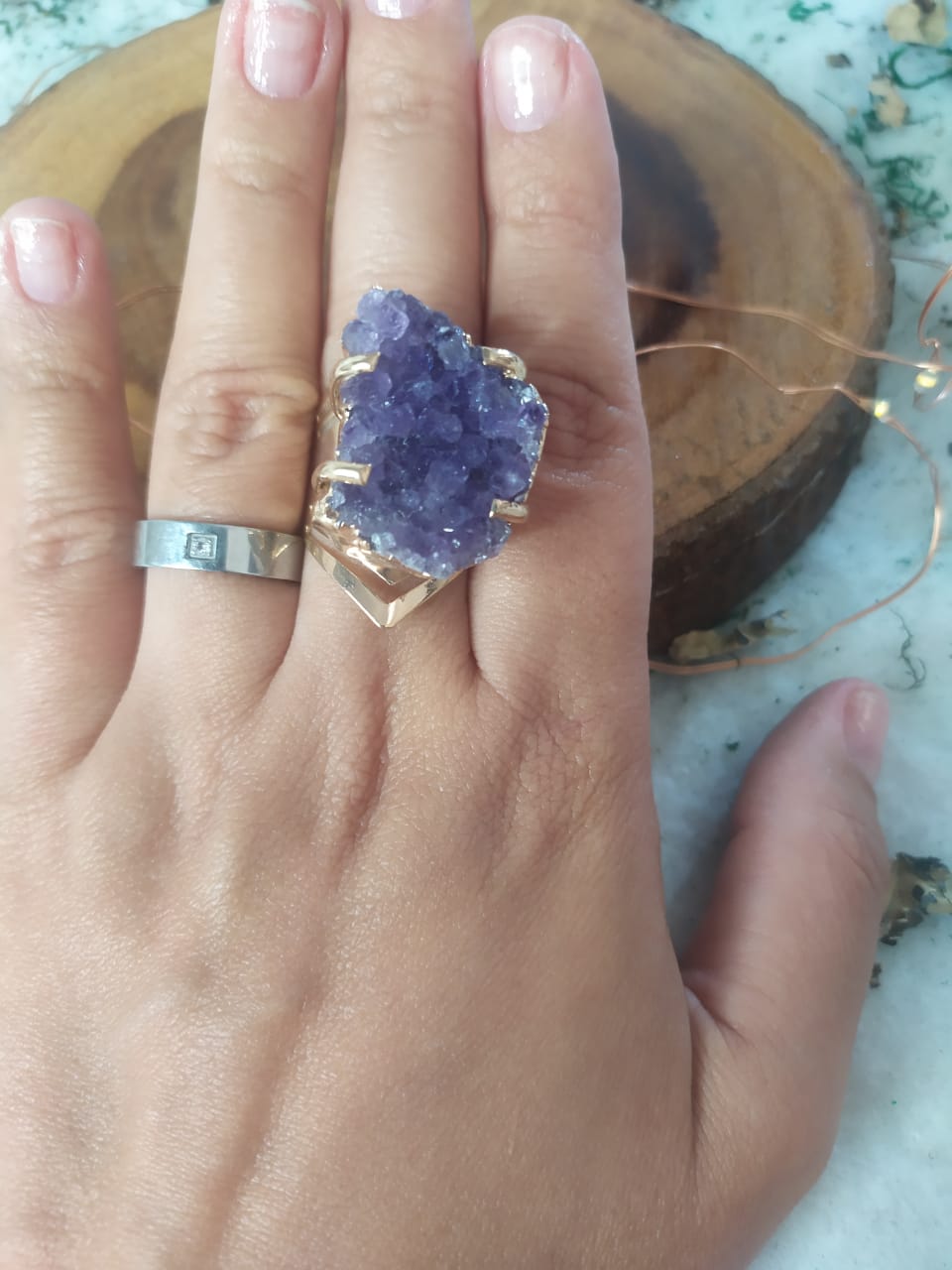 Anel de Ametista Bruta - Maravilhoso Anel de Pedra Natural
