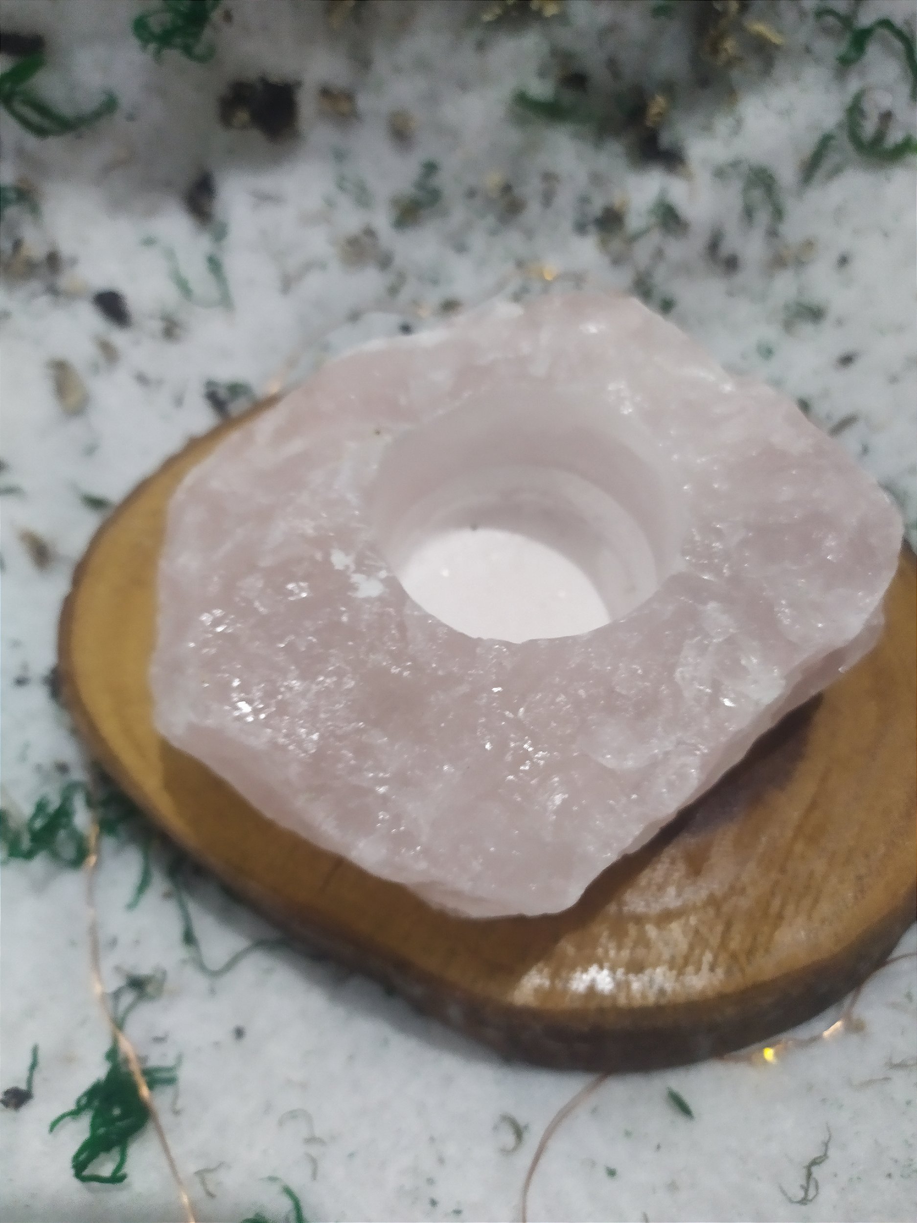 Porta Vela de Cristal - Quartzo Rosa- 100% Natural e Verdadeira